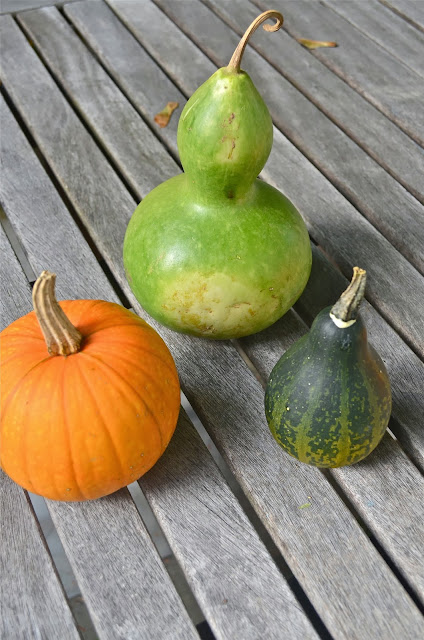 While in Vermont last month we bought a bundle of uniquely shaped gourds and a few big pumpkins for the front porch. The gourds are beautiful in their natural state but I thought sprucing them up a bit would instantaneously turn them into “holiday” decorations. Let’s be honest – decorating is not my forté. I had to really pat myself on the back after I Emma turned these traditional gourds into “golden beauties”.