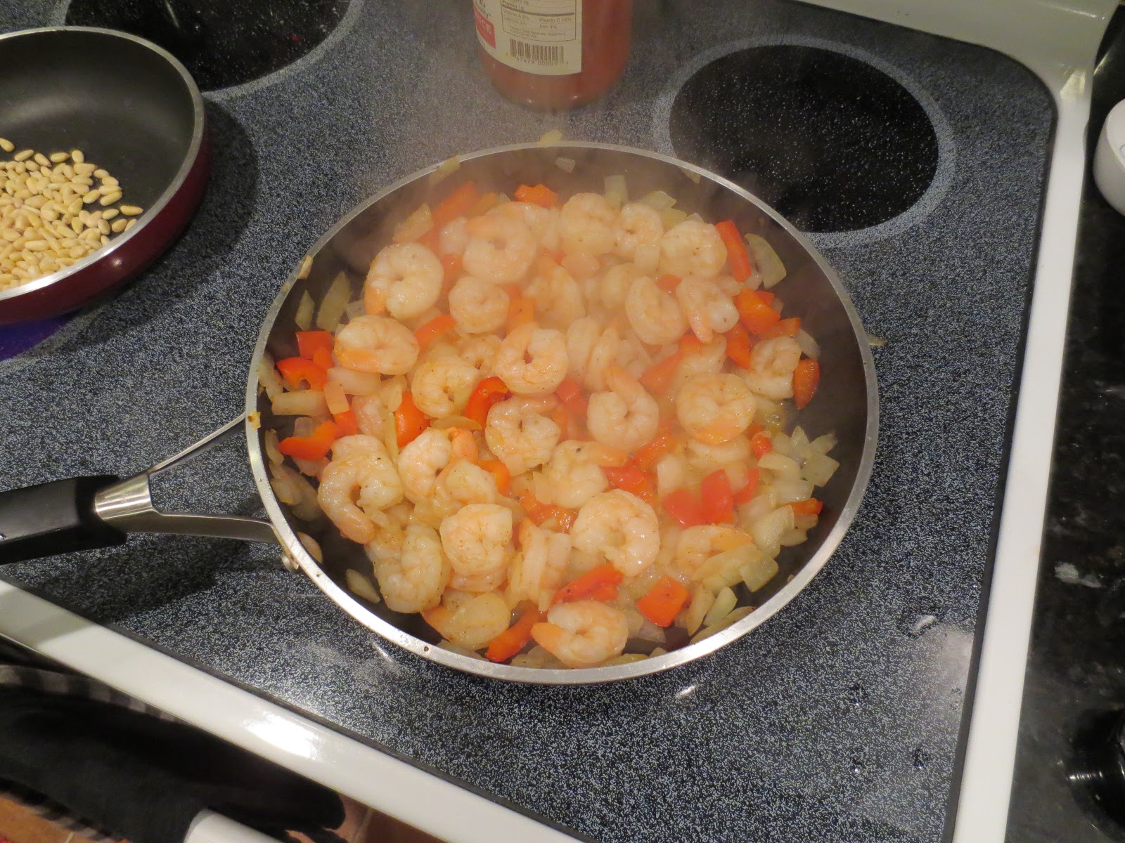 (Take note of the pine nuts roasting to the right of the shrimp. We’ll get to them later.)
