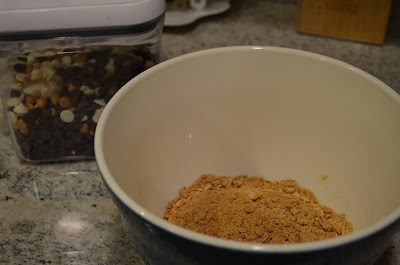 3)Pour butter and graham cracker crumbs into large bowl and mix well
